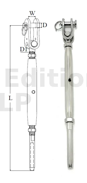 Tendeurs de fourche avec embout pour câble, mâchoire fermée, AISI 316