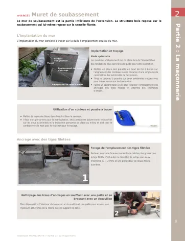 - La maçonnerie pas à pas : du terrassement à la pose de la dalle.