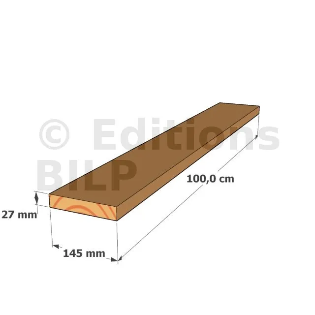 Lame BOIS Douglas - épaisseur : 27mm, largeur : 145mm, longueur 1,00m - Bords droits - Réf. SND-L-27-1000