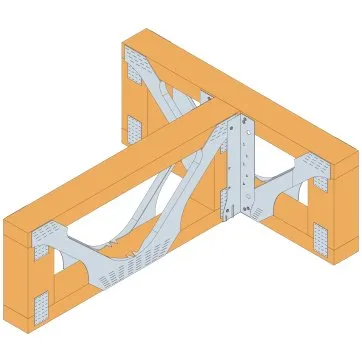 - Cette languette peut être pliée vers le haut pour les cas où le bas de solive n’est pas aligné sur le support.