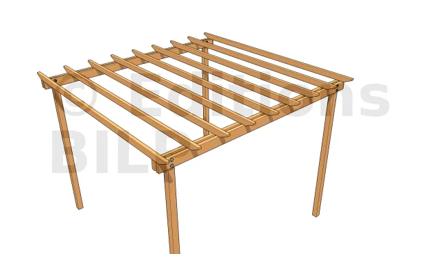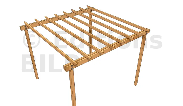 Prenons un exemple pour 400 cm de poutres porteuses, poteau de 10 cm de large, une longueur de 15 cm de porte-à-faux pour ces poutres et un chevron de 5 cm d’épaisseur.