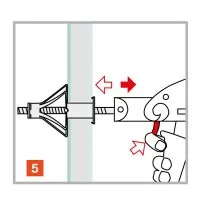 La cheville est disposée dans le perçage sur le support avec une pince dédiée, l’action de la pince permet l’expansion et le verouillage de la cheville contre le support.