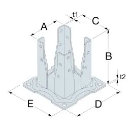 Pied de poteau carré ouvert pour jardin - Finition GALVANISEE