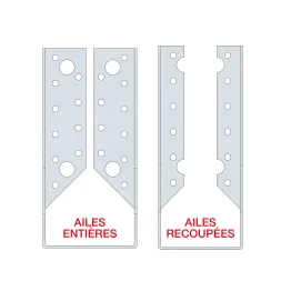 | Références | Développé [mm] | Avec perçages de pointes uniquement (ailes recoupées) | Avec perçages de tirefonds et pointes (ailes entières) |