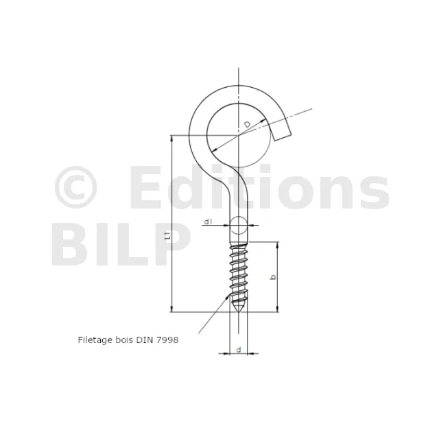 Piton ouvert à filetage bois - Réf. 07060406002
