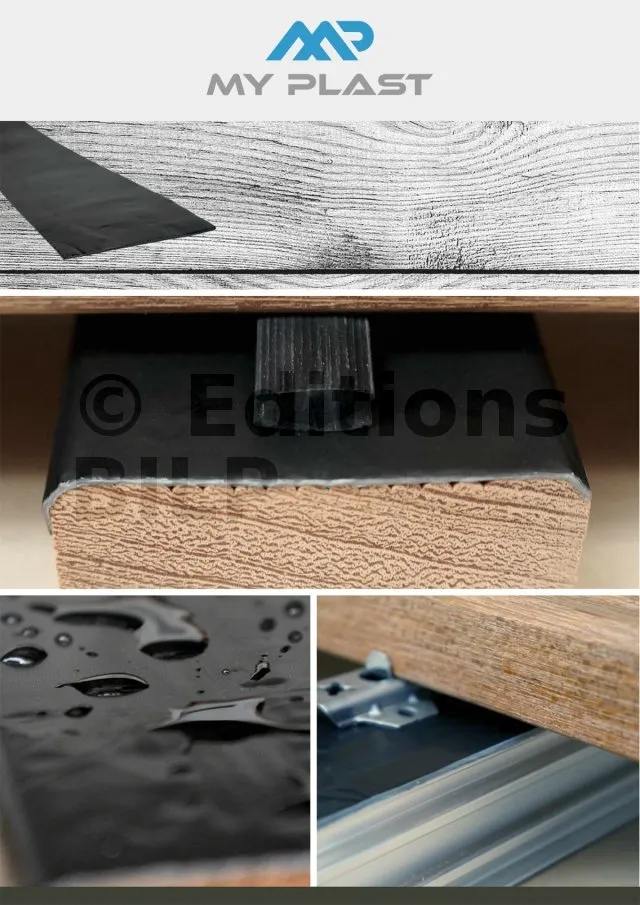 La bande d’étanchéité en butyle se colle directement sur les lambourdes afin de créer une barrière protectrice contre l’eau et l’humidité. Elle agit comme une couche intermédiaire durable, évitant l’accumulation d’eau de pluie et limitant le risque de pourriture ou de corrosion de la structure.