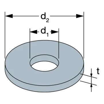 | Références | Ø intérieur d1 [mm] | Ø extérieur d2 [mm] | Épaisseur t [mm] | Ø boulon |