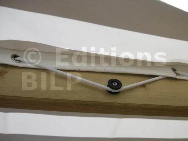 Les sandows sont en périphérie de la toile. On peut ajouter des attaches aux centres de la toile pour éviter qu’elle ne flotte dans le vent.