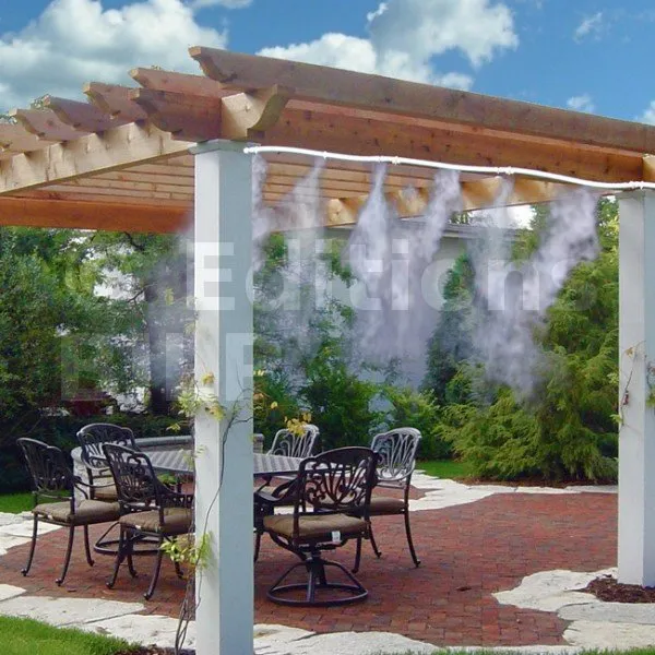 Via des buses qui équipent des tuyaux de diffusion reliés à un groupe haute pression dégageant un minimum de 60 bars de puissance, on expulse de fines particules d’eau dans l’air ambiant. Il existe des systèmes de différentes puissances de pression pour obtenir une température plus basse ou une diffusion de produits plus intense.