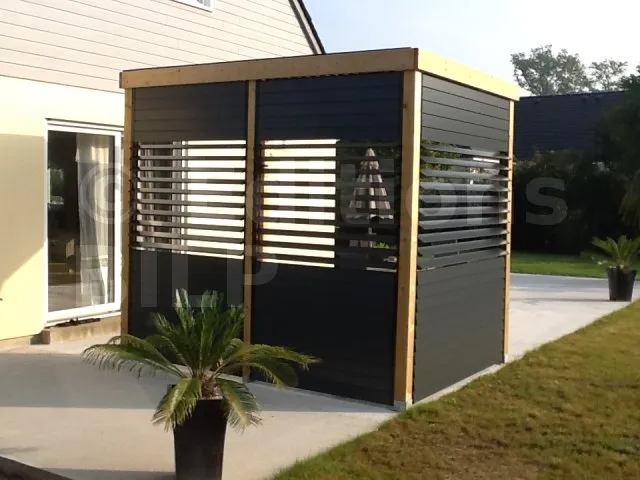 Un simple store vénitien d’intérieur est souvent composé de matériaux trop fragiles pour l’extérieur. Il est préférable d’employer un système à base de lames orientables réalisées à partir de planches de bois épaisses et durables, ou de lames en aluminium. Comme les lames sont orientables, elles peuvent être ajustées dans toutes les positions, permettant ainsi de moduler la lumière, d’occulter partiellement la vue pour préserver son intimité, ou de faire barrage au vent.