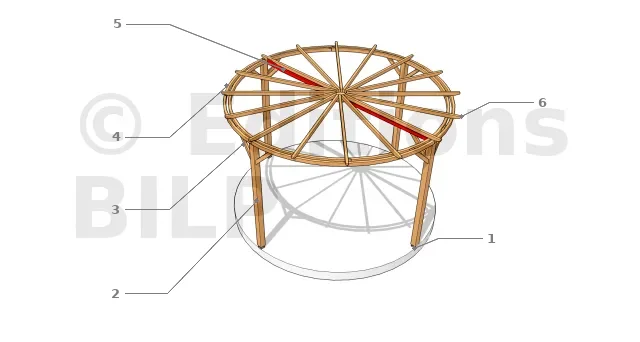 Imaginer une pergola circulaire autoportée dans votre jardin. Les chevrons formeront des rayons depuis le milieu et seront supportés par les poutres arrondies aux extrémités et la poutre dans le diamètre du cercle. Vous pouvez construire vous-même cette pergola si vous avez les matériels et connaissances nécessaires pour courber un élément bois sinon vous pouvez commander ces éléments directement chez un fournisseur compétent.