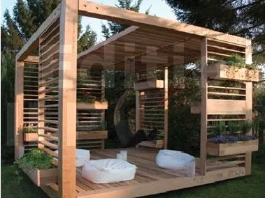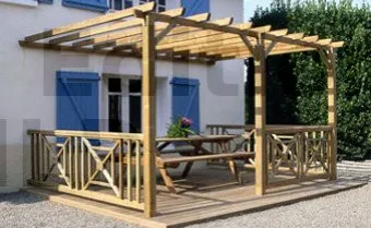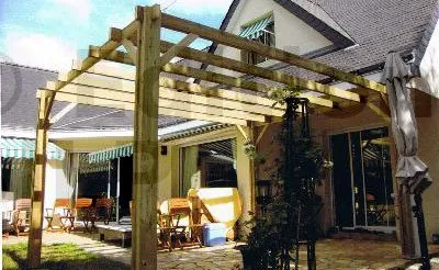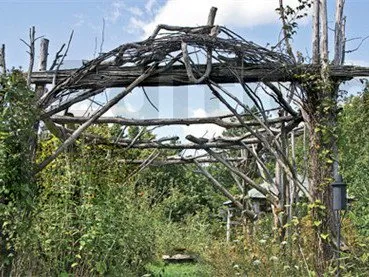 Dans les cas extrêmes, la pergola rustique est réalisée à partir de troncs et de branches à peine avivées et écorcées.