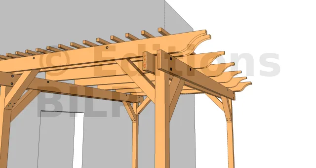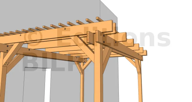 On commence par les chevrons au niveau des poteaux que l’on prend en sandwich.